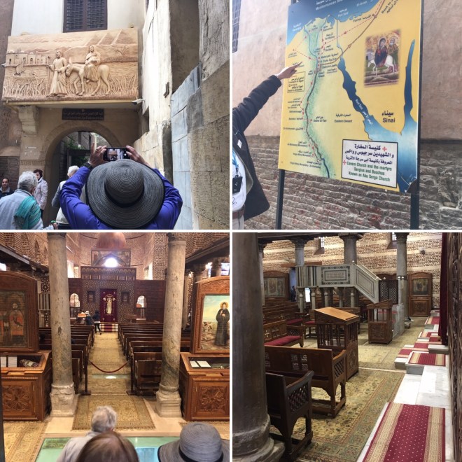 On our last day we visited a Jewish Synagogue, two Coptic Churches, and a Moslem Mosque. At each site we got information on the theology and history of each s community of believers. According to Egyptian tradition, Mary, Joseph and Jesus spent 3 and a half years in Egypt. The first three months in Cairo hiding in a cavern that is now a Coptic Church. A mural of their journey was outside of one churches. An actual tour of each site is planned in the near future.