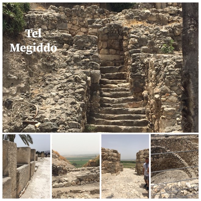 On to next site…Tel Megiddo as the heat was rising. Here we were at Tel Megiddo National Park, an archeological dig site since 1903. Tel Megiddo is a tel or hill created by more than 20 different levels of civilization. It is considered one of the oldest ancient towns or settlements in the Middle East. The first inhabitants date from about 7000 BC. It was a major trading center as it was at the crossroads of the north-south road from Assyria to Egypt and the east-west route from the Mediterranean to Mesopotamia.