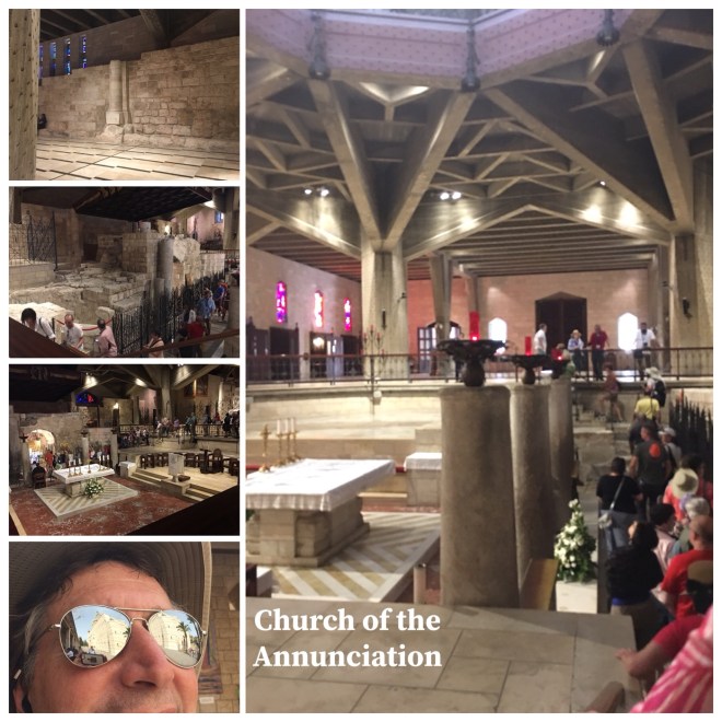 After going south to Megiddo, our bus turned north east to Nazerath. This was the home of Mary, the mother of Jesus. And later the family when they returned from Egypt. We visited the Church of the Annunciation which is a 20th Century built over the first century home, 4th and 12th century churches. The lower floor is very modern but very tasteful in preserving the original site. The worship area is on the second floor seen through the open canopy in the center of the church.