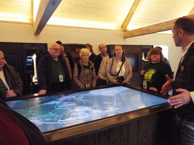 Our song of the day is “the wipers on the bus go swish, swish, swish. ” Why, well the Weather today was very Irish…rain, rain, and more rain with short peaks of sunshine . I am so glad I decided to bring my Gore-Tex rain coat and my new waterproof boots.