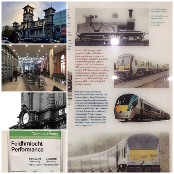 On the bus we asked a young professional standing next to us about which stop would be the train station as the information on the board was in English and Irish and spoken with an Irish accent. To our good fortune that was her stop. Our guide is an American graduate from Pittsburg on a one year student visa working for the Irish government. She was delightful and we made it to the train on time.