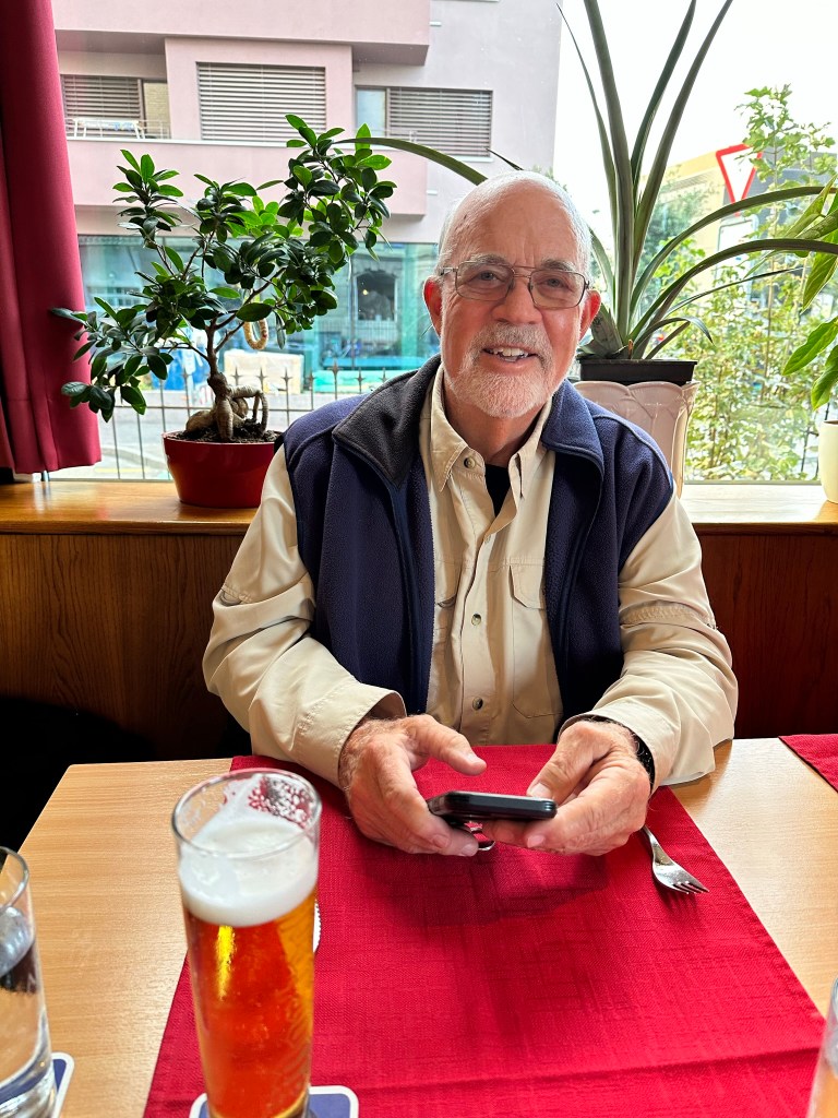 Doc Ray and I started out from different cities to arrive in Basel, Switzerland. Doc Ray began his day on the 18th in Fayetteville, Arkansas with flights to Atlanta, Paris then Basel. Grandma began in Charlotte, NC to Munich, Germany then to Basel on the 19th. It was exciting to arrive in the baggage area in the Basel Airport to see my brother waiting to retrieve my luggage.