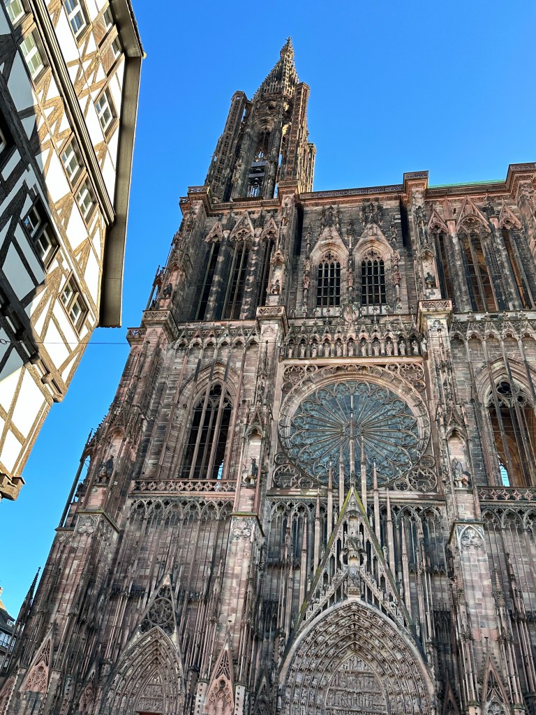 Saturday was beautiful day in Germany and France beginning with a guided walking tour of Strasbourg, Germany. The Strasbourg Cathedral-was built between 1015 and 1439. The spires of the cathedral are 466 feet in the air and until 1874 was the tallest building in the world.