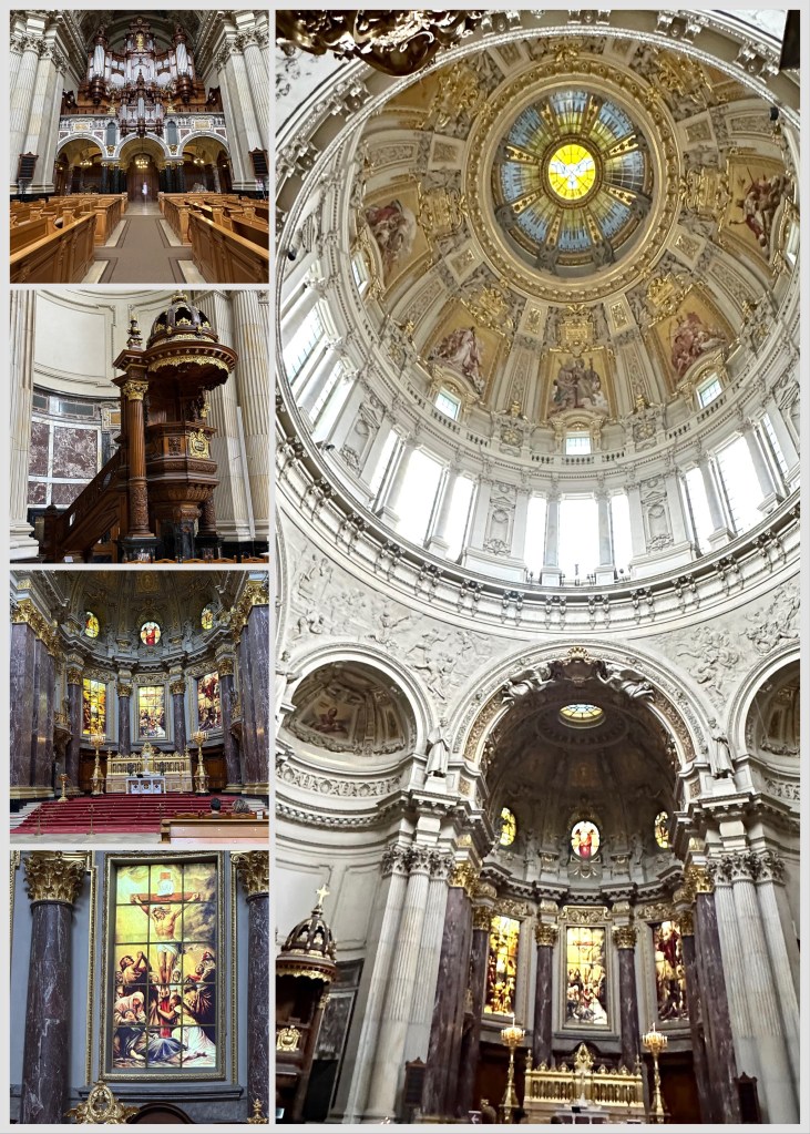 Berlin Cathedral or Dom is on Museum Island a short walk from our hotel Built on the foundation of an earlier church (1500) it was commissioned by Kaiser Wilhelm II as the Protestant Cathedral for the Prussian Rulers.