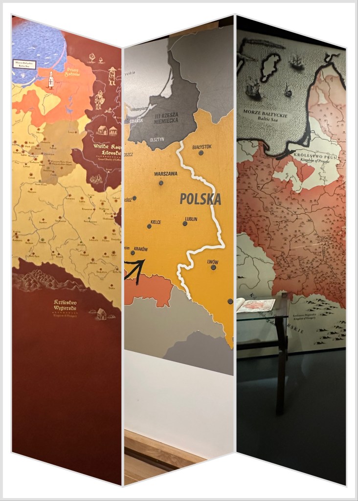 The museum outlines the history of Poland under many foreign rulers especially after the 16th century. Maps show that the borders of Poland have changed over the centuries as each set of conquerors has partitioned the country in different ways.