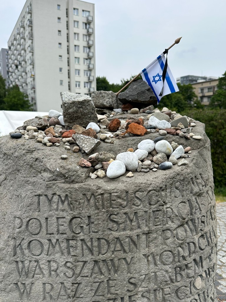After WW II the Jewish population of Poland had been reduced by 90% as 3.3 million Jews had been exterminated. Poland under the Soviets was not better that during the war, so most of the Jews in Poland emigrated to either Israel or to the United State. Memorial are around the Ghetto area such as the ones below.