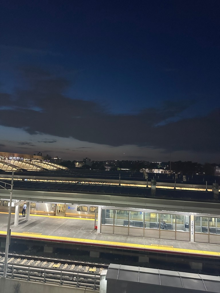 Arriving by way of the E-train (subway) to the monorail Airtrain was after 13 hours and in the dark.