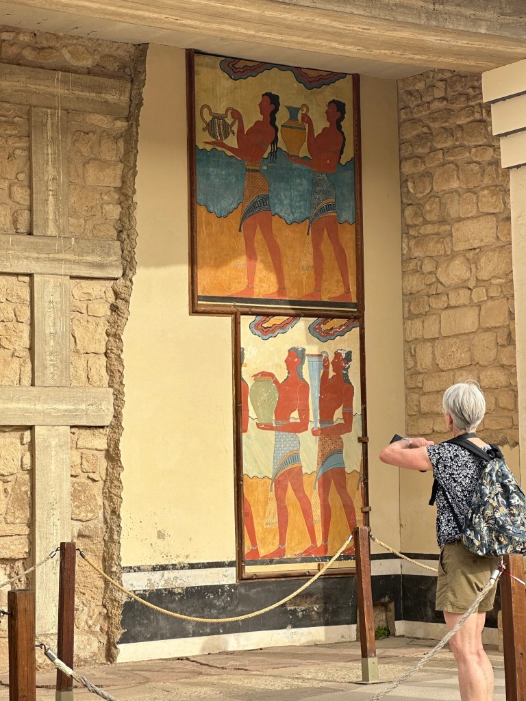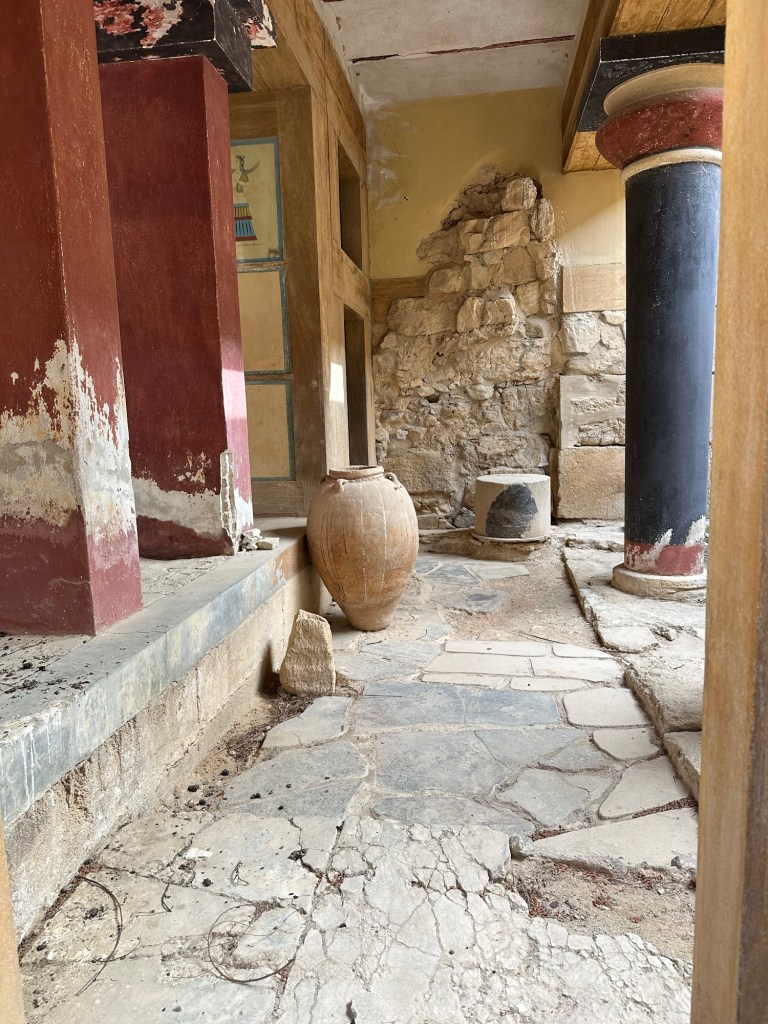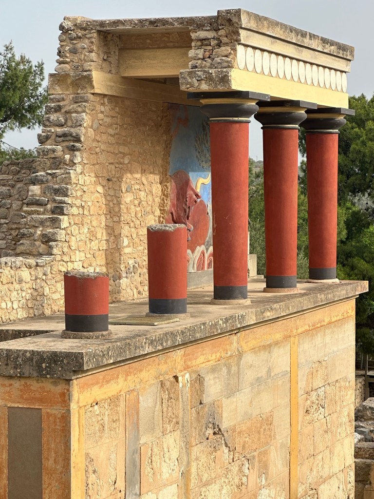 Knossos is an archeological site full of legends (Homer’s Osyssey) and myths (the Minotaur). Built and rebuilt during the Bronze Age (1700-1480 BC) the site was thought to be imaginary until the massive palace was discovered in 1900 AD by British Archeologist, Sir Arthur Evans.