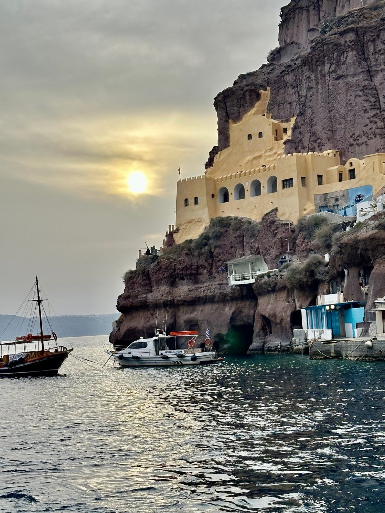Santorini has very limited land at sea level where the ship anchored. The harbor side of the island has mainly gift shops and restaurants. To see the main attractions required an optional tour. Limited spaces on the ship’s tours found us doing our own excursion!
