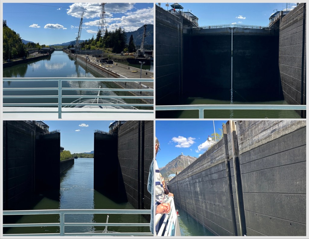 Our afternoon was spent with an orientation to the ship and going through our first lock on the Columbia river as we headed north toward the Pacific Ocean.