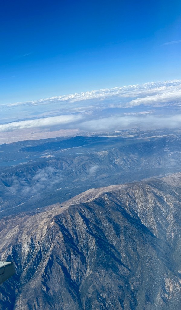 As we got closer to California, the clouds cleared, and I was able to photograph the beautiful mountains in Arizona and in California from the plane.